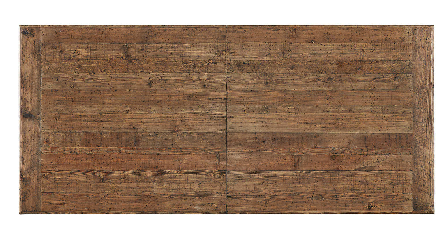 Concealing a butterfly leaf, this generously scaled table will stretch to accommodate your largest holiday gatherings. Reclaimed pine with a black washed undertone and family friendly clear coat finish is used to craft this beautiful table. The neutral wood tone allows you to use your imagination when selecting your chairs.